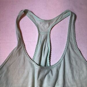 Lululemon 105f singlet in mint stripe. The rip tag was removed, but the measurements are similar to the other 10's I have.