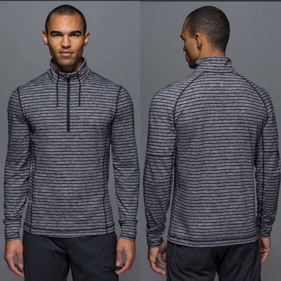 Lululemon 1/2 Zip Mens Small Heather Gray Striped Sweat Session Reflective Run