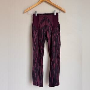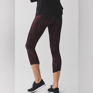 Lululemon 2 Exquisite Crop Painted Animal Bordeaux Drama Black Bordeaux Pocket