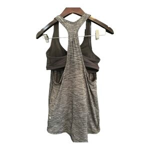 Lululemon 2 in 1 Tank w/Detachable Bra Heathered Black Gray Racerback Tank Sz 6