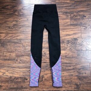 Fabulous athletic leggings by Lululemon. “Love Revealed Tight” style in "Black/Rainbow" space dye. Style no W5CKHS. Waist 19-24“, rise 9“, inseam 25.5“. Size 2, excellent preowned condition.