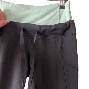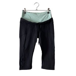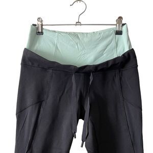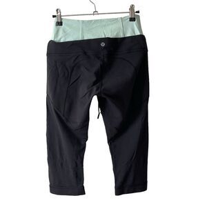 Lululemon 4 Crop Leggings Black Aqua Dual Waistband Workout NO SIZE