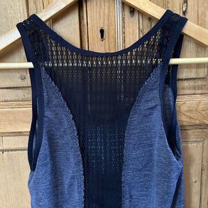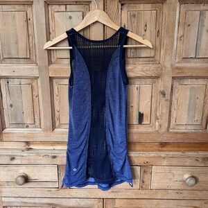 Lululemon 4 (?) Navy Blue Tank Top Athletic Lace Back Longer Length V-Neck