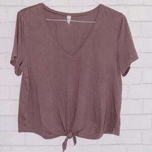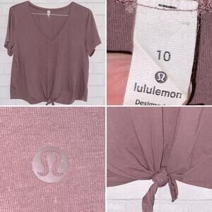 Lululemon $48 Knot Gonna Fly Tee Antique Bark Mauve Tie Hem SS V Neck Tee 10