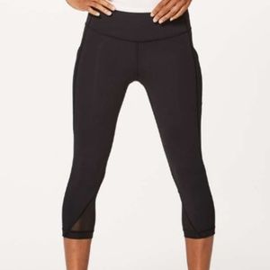 NWT. Brand new, never been worn, with tags. Lululemon Sweat Your Heart Out Crop. Medium Rise and Hugged Sensation. Thigh side pockets. Mesh fabric panels for ventilation. Flat seamed for chafe-resistance and comfort. Size 6. 79% Nylon and 21% Elastane
