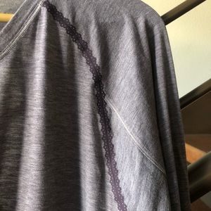 Lululemon, long sleeve lightweight top. Super cute fit and cut out back design. Sz 10, smoke free home. Top has small stain in front, see last picture, not too visible.