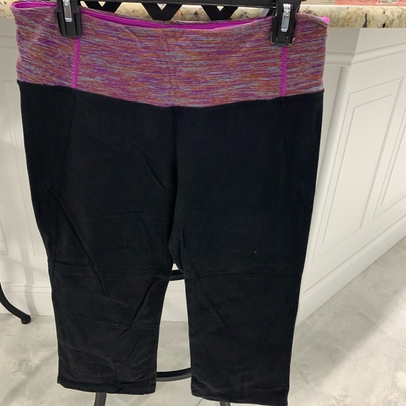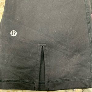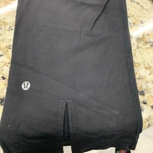 Lululemon leggings these go right below the knee caps with slits in the back of the legs.
