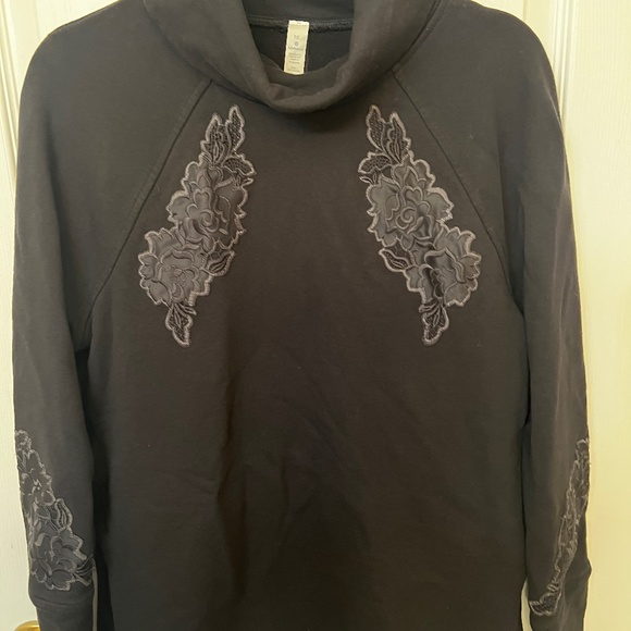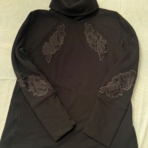 Lululemon Black Flower Applique Turtleneck Front Pouch Sweatshirt