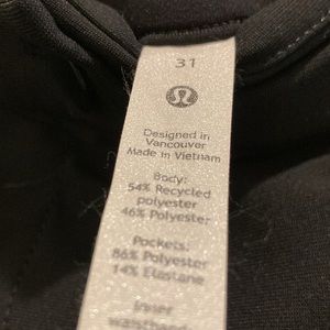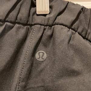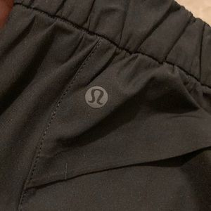 Lululemon black joggers. EUC, Side pockets with front seams. Inseam is 27 1/2, waist is 16 1/2 not stretched.