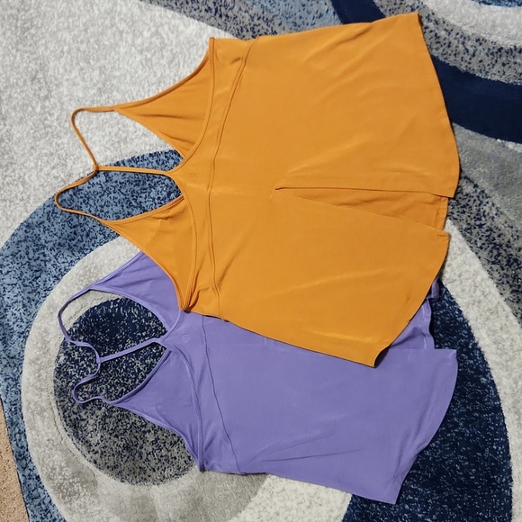 Two modal silk items are for sale, both in excellent condition. The autumn orange piece is in excellent condition.The purple piece has a minor flaw, a tiny hole visible only upon extremely close inspection, as shown in the last photo.