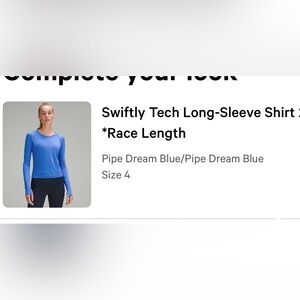 Lululemon Swiftly long sleeve. Color is pipe dream blue. Size 4. Open to reasonable offers