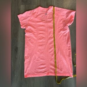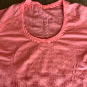 Lululemon Swiftly Tech Short Sleeve in a bright coral color. Lightweight, seamless, and breathable — perfect for running, training, or everyday comfort. Size tag was cut off, but based on measurements it fits like a Lululemon size 6–8.