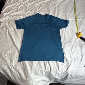 Lululemon Short Sleeve Shirt in Blue, Men's Size Medium. This high-performance training top features a seamless construction to minimize chafing and integrated mesh ventilation in high-sweat zones. Designed for running, training, and working out. The inner hem features the motivational phrases "GET OUTSIDE. GET SWEATY." and "TIME TO GET DIRTY.". Features: - Silverescent technology powered by X-STATIC inhibits the growth of odor-causing bacteria on the fabric.