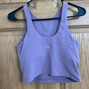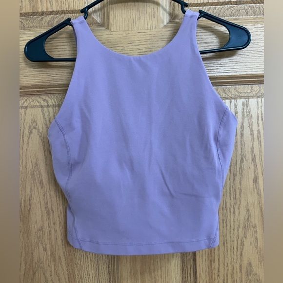 Good pressed condition light wear. Believe this is the Align High-Neck Tank Top in a light purple-ish/pink peony shade, designed for low-impact yoga and featuring a built-in shelf bra.