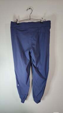 Lululemon Align High-Rise Ribbed Joggers, Purple Heather, Women's Size 12. These joggers are crafted from buttery-soft Nulu fabric with a textured ribbed finish for a unique look. Features a high-waist fit, front drawstring for adjustability, and convenient side pockets. Perfect for yoga, errands, or lounging in comfort. Excellent pre-owned condition with no visible signs of wear, stains, or damage. Iconic Lululemon logo remains crisp on the leg.