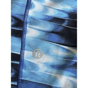 These Lululemon 8 Speed Up Crop leggings are perfect for any active woman. The blue swirly striped design adds a fun touch to your activewear collection. The leggings feature side pockets for convenient storage and a compression area on the leg for added support.