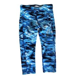 Lululemon 8 Speed Up Crop Blue Swirly Striped Leggings With Side Pockets