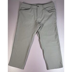 The Lululemon ABC Crop Pant in Men's size 40x28 is a stylish and comfortable choice for men looking for a relaxed fit. Made from textured shock chord fabric, these pants feature a solid gray color and a high rise waist. The straight leg style and 5-pocket design, including a coin pocket, provide both functionality and modern style. Perfect for a preppy look, these cropped pants are a versatile addition to any man's wardrobe.