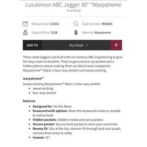 Model: Lululemon ABC Jogger 30” *Warpstreme
