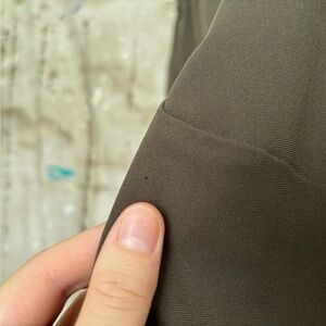 Has a tiny burn spot on one of the legs and on the drawstring one of the aglets is missing and the other is melted - see pictures