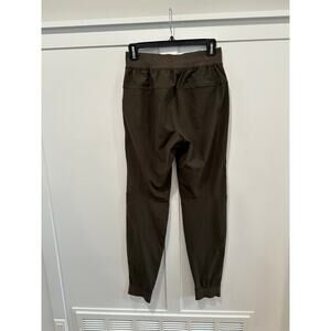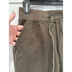 Adjustable drawstring at waist. Side pockets and one back zippered pocket.