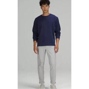 The Lululemon ABC Slim-Fit 5 Pocket Pant Warpstreme in size 38 is a stylish and functional pair of men's pants for casual occasions. Made from polyester material, these pants feature a modern design with a mid-rise waist and slim-fit silhouette. The gray and black color scheme adds a versatile touch, while the 5-pocket design offers convenience and functionality. With a 32-inch inseam and flat front, these pants are ideal for the spring, summer, and fall seasons. Perfect for everyday wear, these Lululemon pants combine comfort and style effortlessly.