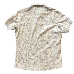 Lululemon Airing Easy Short Sleeve Button Up Cream & Greenish Gray Graphic Print Stretch Shirt in Men's Medium