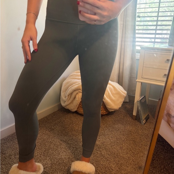 Stylish gray high-waisted leggings. Perfect for casual wear.