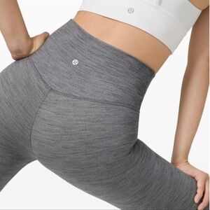 Heathered Black in preowned condition, tag is off, Gently used lululemon leggings, super soft, Lightweight, color is Subtle grey stripes