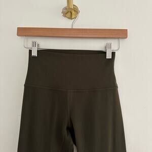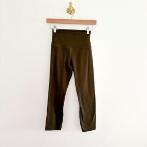 Details: Lululemon Align Crop Leggings *21" - Size: 4- Color: Dark Olive/Green- Material: Nulu - Features: High rise waist, pull on, logo, wide waistband, elastic waistband, sweat-wicking, cropped, four-way stretch, comfort, breathable, casual, activewear. Style: W6AS8S - Lightweight, buttery-soft Nulu™ fabric wicks sweat and is four-way stretch