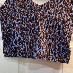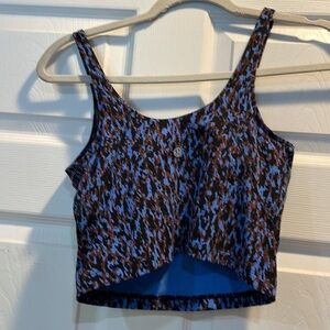 Gently worn Lululemon Align Cropped Bra Top womens size 6. Performance material, blue/black/brown leopard print, built in shelf bra with removeable pads, cropped length. Offers accepted!