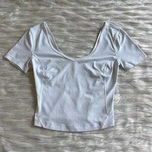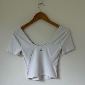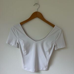Lululemon Align Cropped Short Sleeve V- Neck T-Shirt in White - Size 4/6