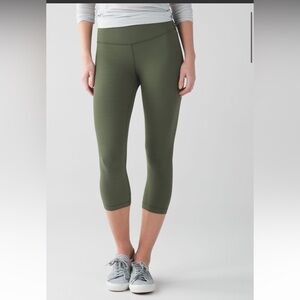 Lululemon Align Cropped leggings capris running moss olive Fatigue mid rise