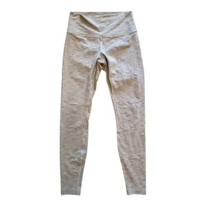 Lululemon Align leggings in a sleek grey striped print, size 8. These buttery-soft, weightless leggings are designed with Lululemon’s signature Nulu™ fabric for a barely-there feel that moves with you, whether you’re at yoga, Pure Barre, or lounging. High-rise fit with a flattering waistband and full length silhouette. Excellent pre-owned condition with no flaws. A versatile pair to add to your activewear rotation.