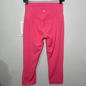 Lululemon Align High Rise Crop Leggings in Guava Pink. 21” Inseam. Stretchy Nulu material with an amazing fit. These are lined. High rise. Color is called Guava Pink. New with tags. Size 8. Price is firm.