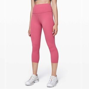 Lululemon Align High Rise Crop Leggings in Lush Pink. 21” Inseam. Stretchy Nulu material with an amazing fit. High rise. New with tags. Size 10. Price is firm.