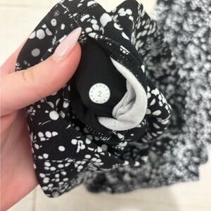 Stylish black leggings with a white abstract pattern. Perfect for casual wear.