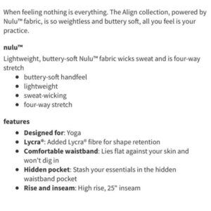Lululemon Align Pants Gym Athletic Leggings Active Wear Style On Trend Trendy Sexy Legging Casual Lounge Soft Cozy Hi Waist High Rise Plus Size