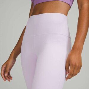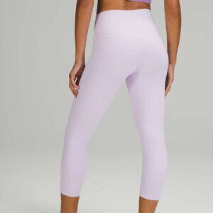 These Lululemon Align Crop 21" leggings in a gorgeous lavender/pastel purple are perfect for yoga, lounging, or light activities. Made with buttery-soft Nulu fabric, they offer a second-skin feel with a flattering high-rise waistband and minimal seams for ultimate comfort.