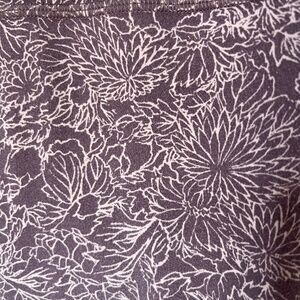 Beautiful light purple color with subtle white flower prints throughout the leggings.