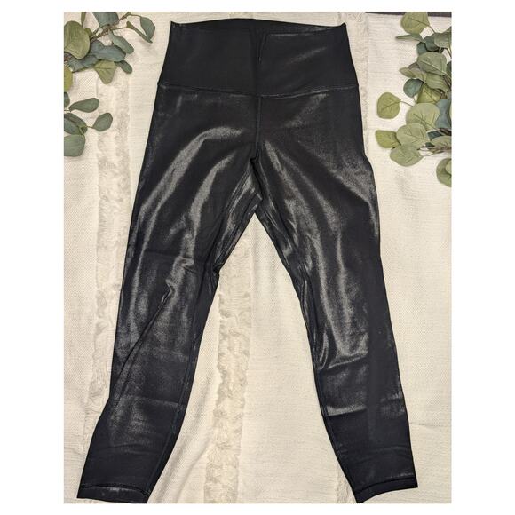 Lululemon Align legging 25" in limited edition shine fabric in black. When feeling nothing is everything. The lululemon Align™ collection, powered by Nulu™ fabric, is so weightless and buttery soft, all you feel is your practice. Worn once, like new.