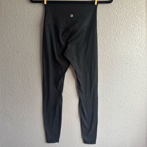 Lululemon Align leggings in a rare embossed black leopard print โ sleek, subtle, and super flattering. These are the iconic buttery-soft Nulu fabric with a weightless feel, perfect for yoga, lounging, or everyday wear.