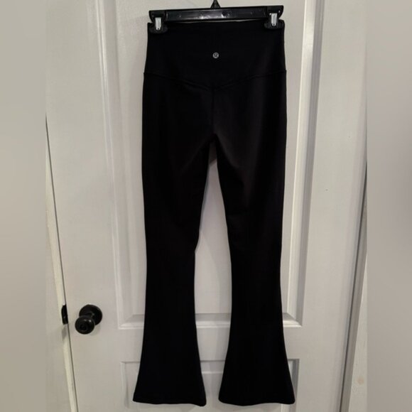 Like new size 6 high rise mini flare align pants in black. No stains, holes, pilling, flaws, or signs of wear. Riptag & size dot intact.