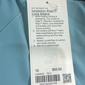 Lululemon Align Long Sleeve Shirt Tidal Teal Size 10 NWT
