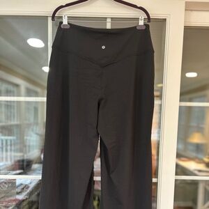 EUC black Lululemon Align short palazzo pants, wide leg and wide bottoms, size 12, measuring 40 inches waist to bottom.