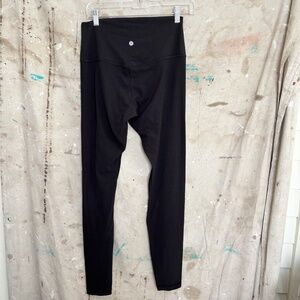 These lightweight, high-rise pants minimize distractions and maximize comfort as you flow through your practice. Designed for yoga, buttery-soft and sweat-wicking Nulu™ fabric needs a little extra love. For best results, machine wash with like fabrics in a cold, gentle cycle and lay flat to dry.