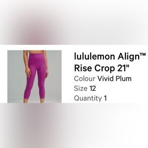 Lululemon Align leggings Super High Rise - Crop 21” - Vivid Plum - GUC - Some pilling in crotch area