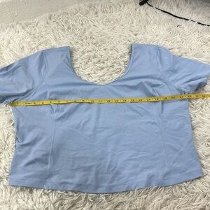 Lightweight, buttery-soft Nulu™ fabric wicks sweat and is four-way stretch