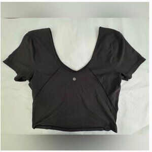 Lululemon buttery soft align t-shirt in Black Emboss colorway. Excellent used condition. I bought this for myself but need a different size. Soft, stretchy nulu material. Slight crop. Perfect for pairing with your favorite high rise leggings, a pair of light-washed jeans, or layering with a cute jacket. Would consider a trade for an align t-shirt or tank in size 8 or 10.