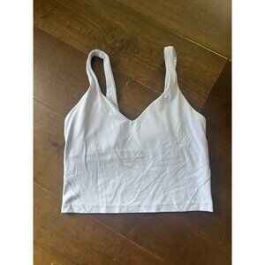 Gorgeous blue color align crop tank from lululemon, very gently used, has pads, size 6! Perfect condition